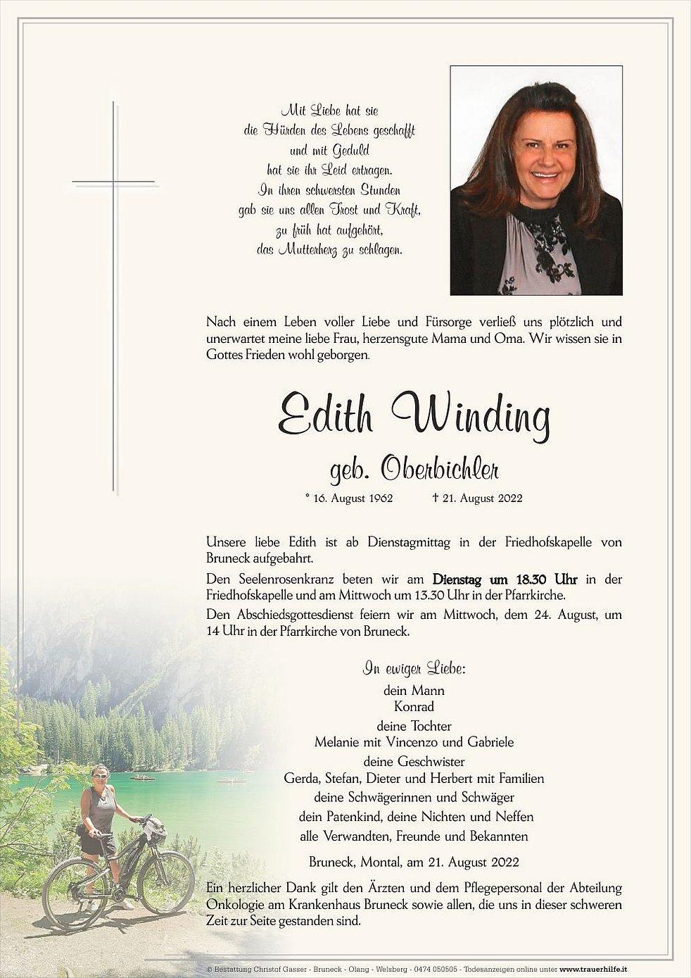 Unsere liebe Edith ist ab Dienstagmittag in der Friedhofskapelle von Bruneck aufgebahrt.