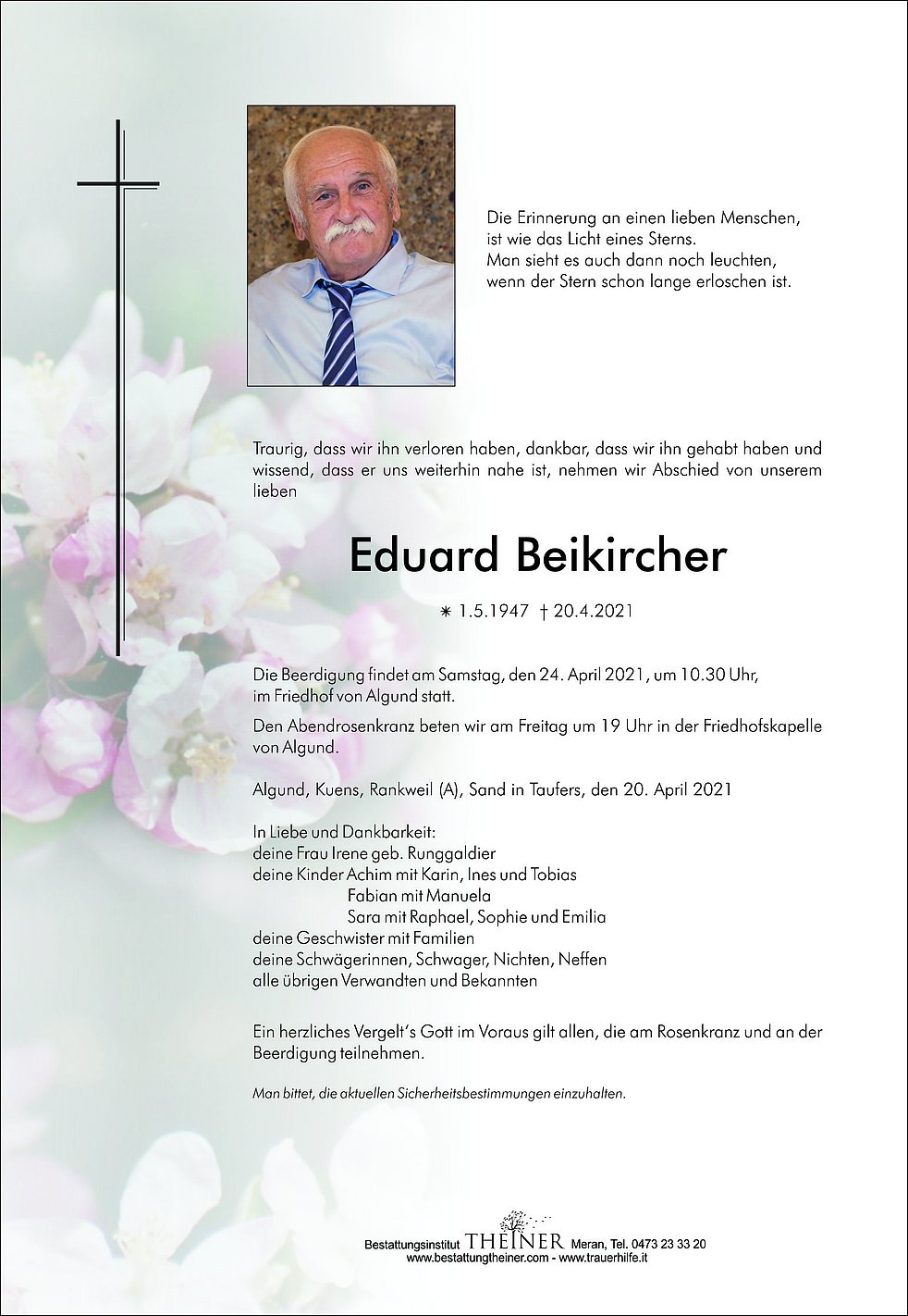Die Beerdigung findet am Samstag, den 24. April 2021, um 10.30 Uhr,