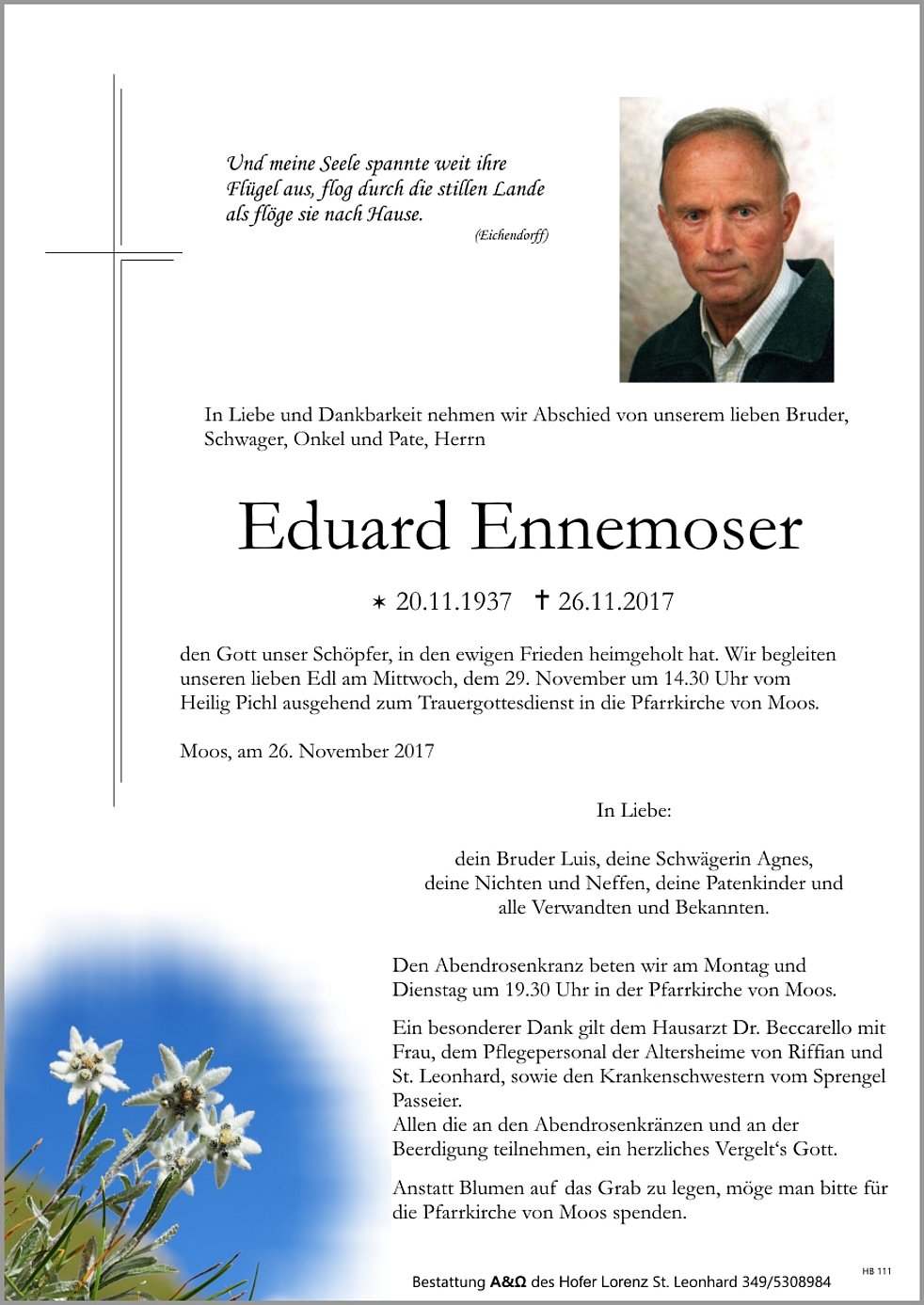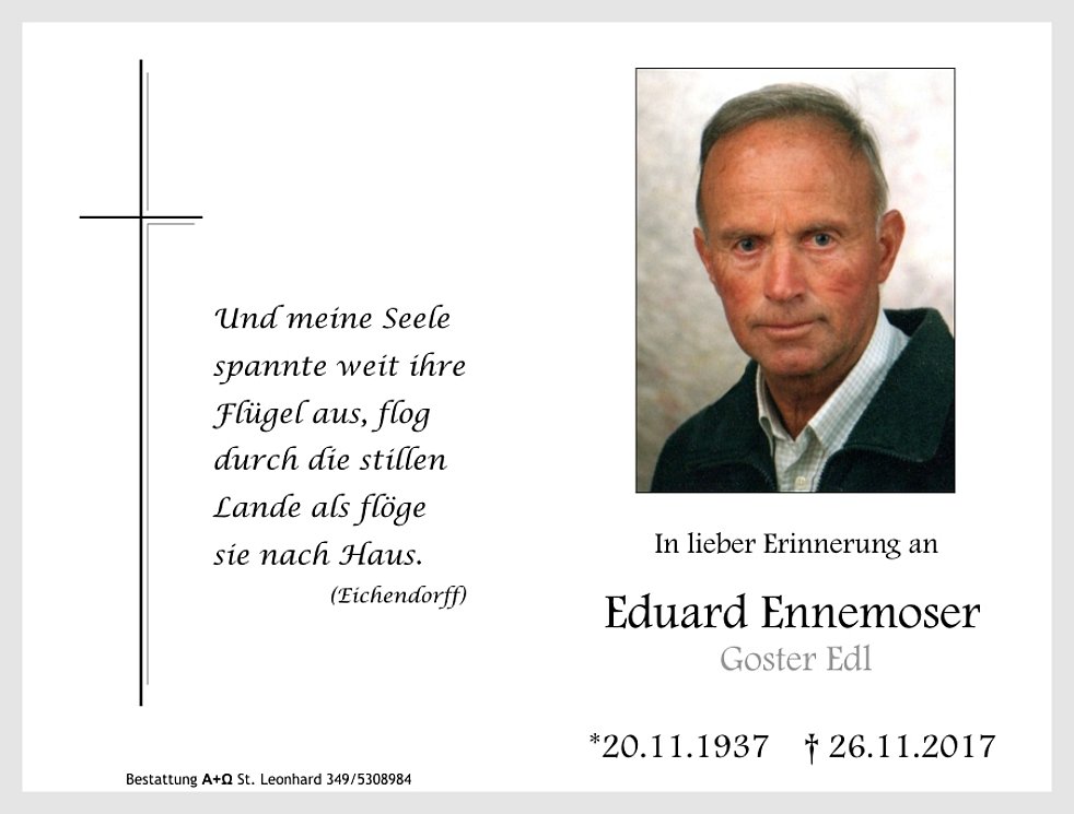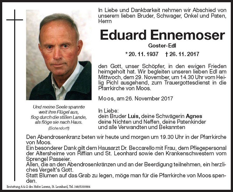 Wir begleiten unseren lieben Edl am Mittwoch, dem 29. November