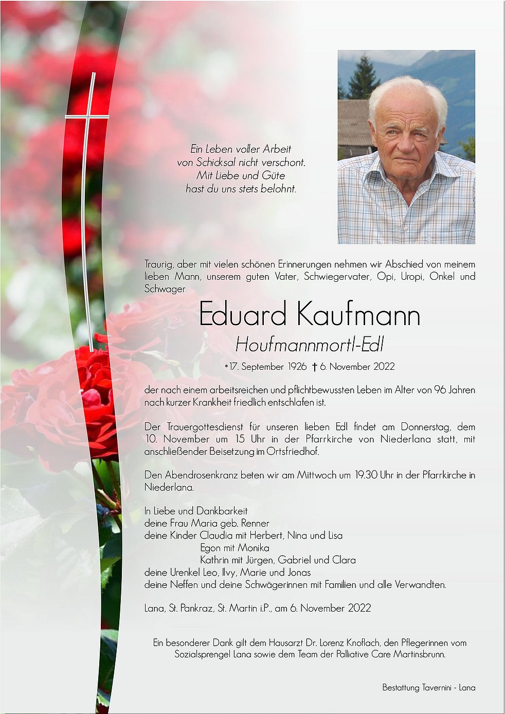Der Tod ist nicht das Ende, nicht die Vergänglichkeit, der Tod ist nur die Wende, Beginn der Ewigkeit.