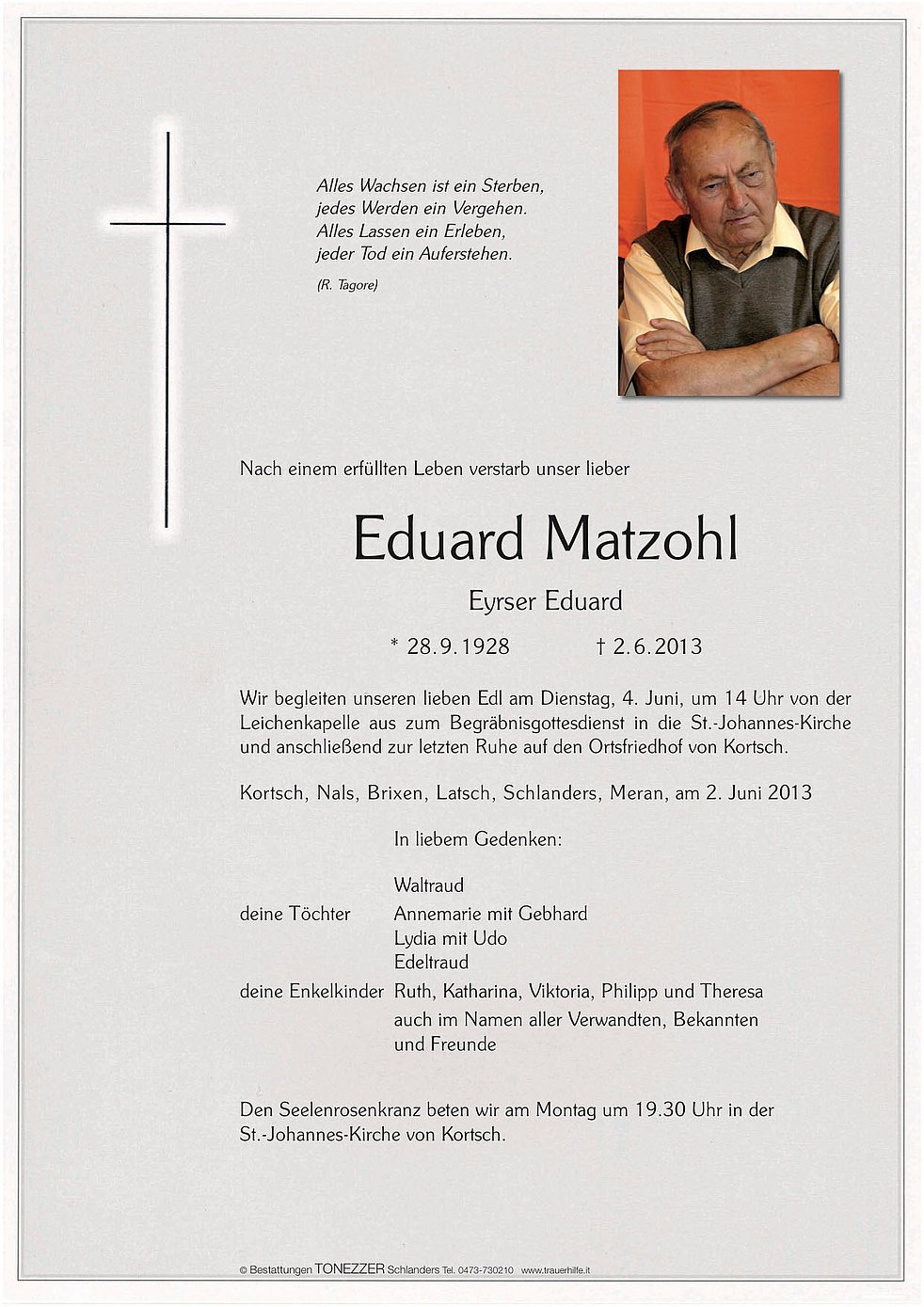 Wir begleiten unseren lieben Edl am Dienstag, 4. Juni, um 14 Uhr von der Leichenkapelle aus zum Begräbnisgottesdienst in die St.-Johannes-Kirche und anschließend zur letzten Ruhe auf den Ortsfriedhof von Kortsch.