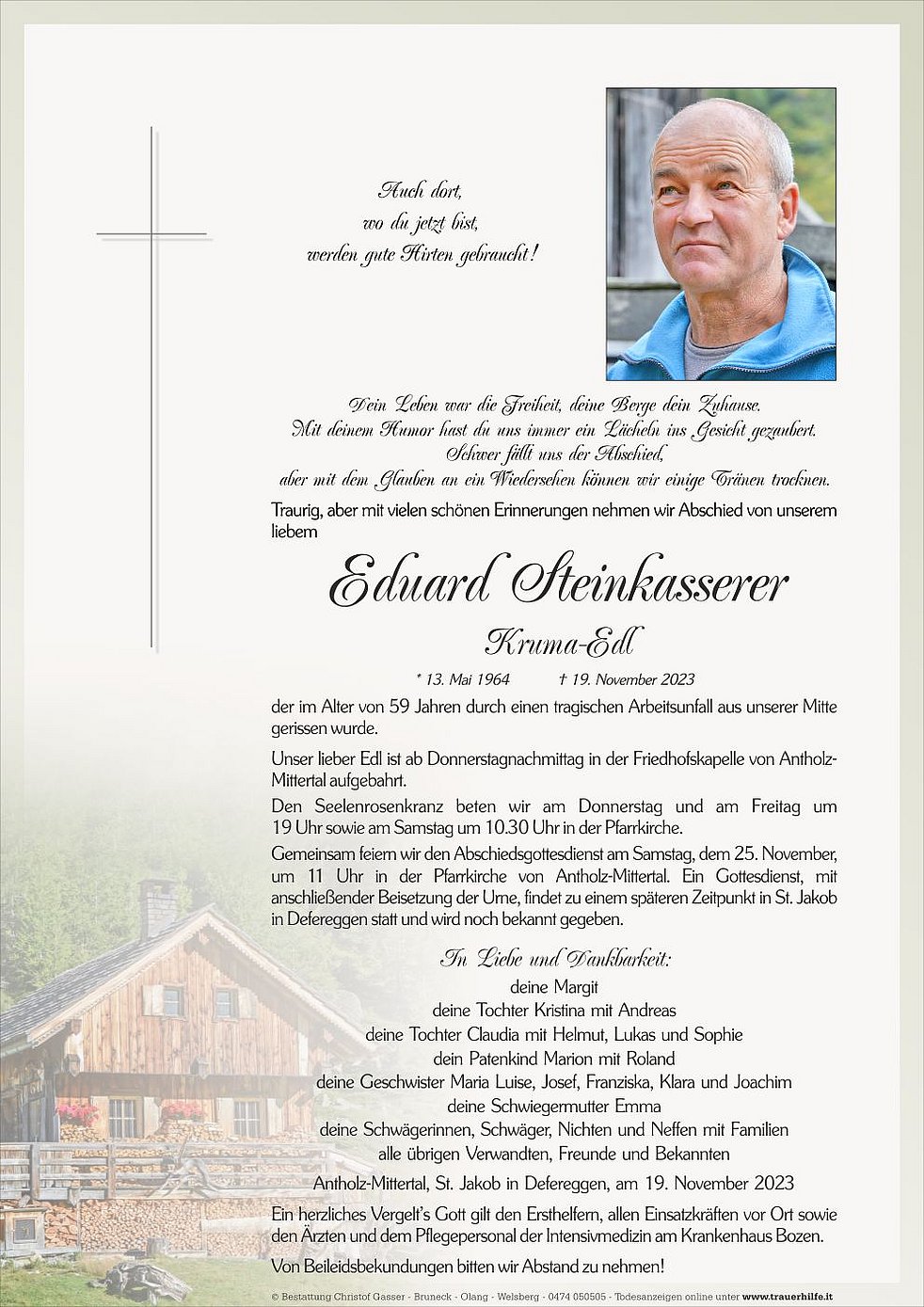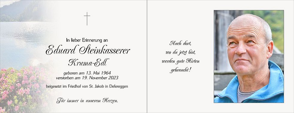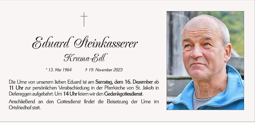 Unser lieber Edl ist ab Donnerstagnachmittag in der Friedhofskapelle von Antholz-Mittertal aufgebahrt.