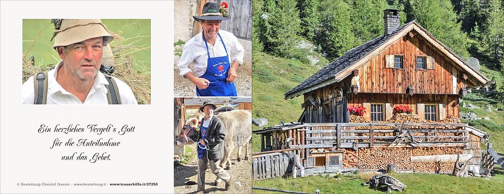 Gemeinsam feiern wir den Abschiedsgottesdienst am Samstag, dem 25. November, um 11 Uhr in der Pfarrkirche von Antholz-Mittertal. Ein Gottesdienst, mit anschließender Beisetzung der Urne, findet zu einem späteren Zeitpunkt in St. Jakob in Defereggen statt und wird noch bekannt gegeben.