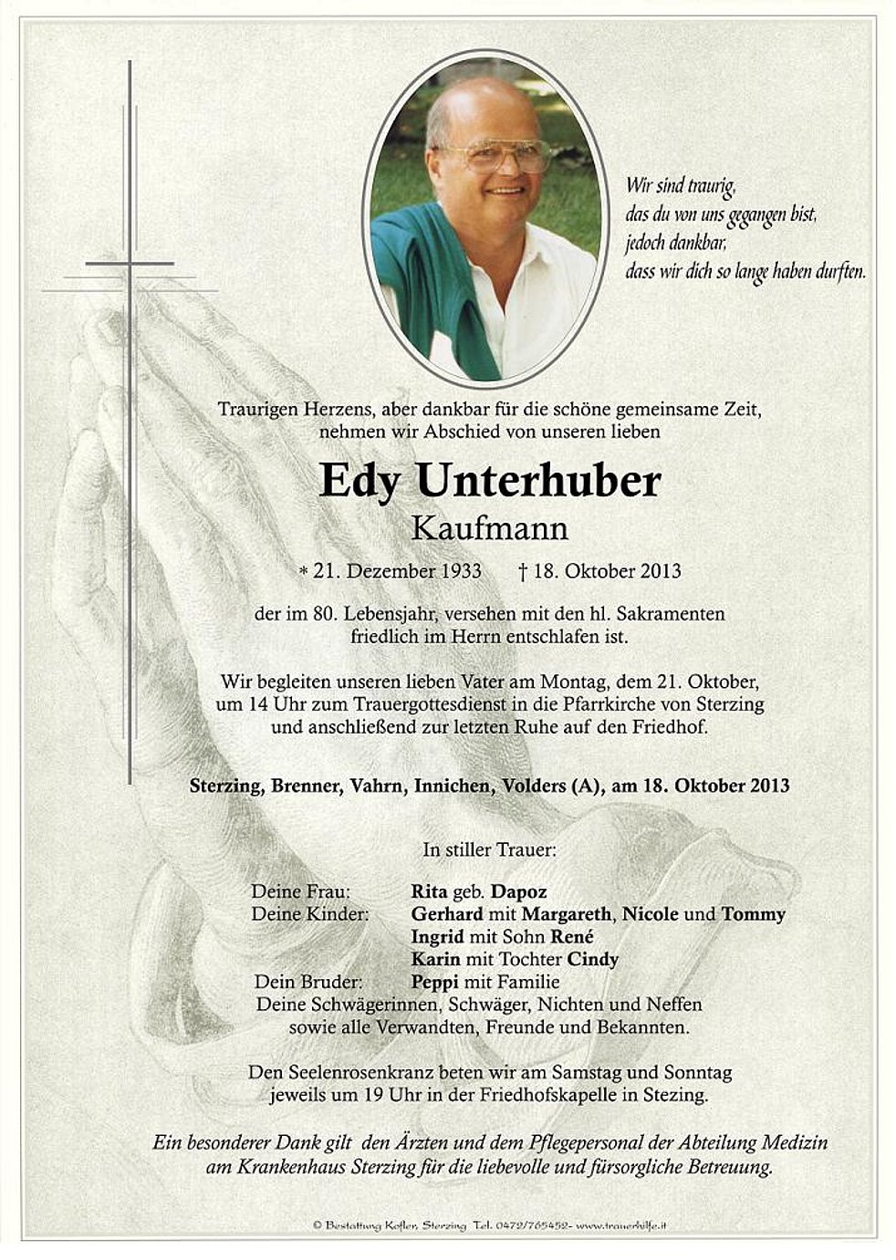 Wir begleiten unseren lieben Vater am Montag, dem 21. Oktober,