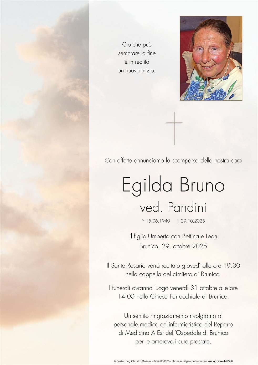 Begräbnisgottesdienst: 31.10. - 14:00 Uhr Pfarrkirche von Bruneck