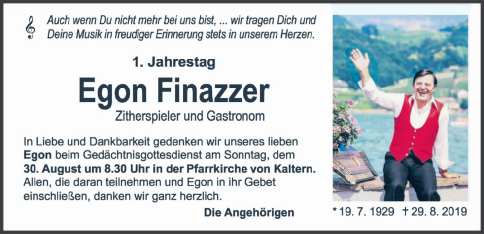 Als Musikerfamilie nehmen wir Abschied von Herrn Egon Finazzer.