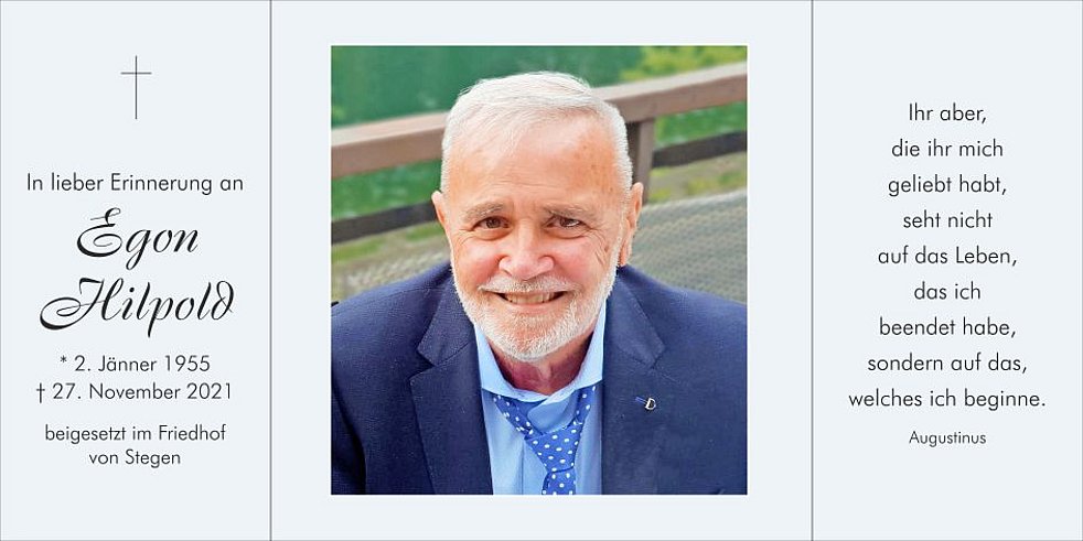 Unser lieber Papa ist ab Samstagnachmittag in der Friedhofskapelle von Stegen aufgebahrt. Den Seelenrosenkranz beten wir am Montag um 19 Uhr in der Friedhofskapelle und am Dienstag um 13.30 Uhr in der Pfarrkirche.