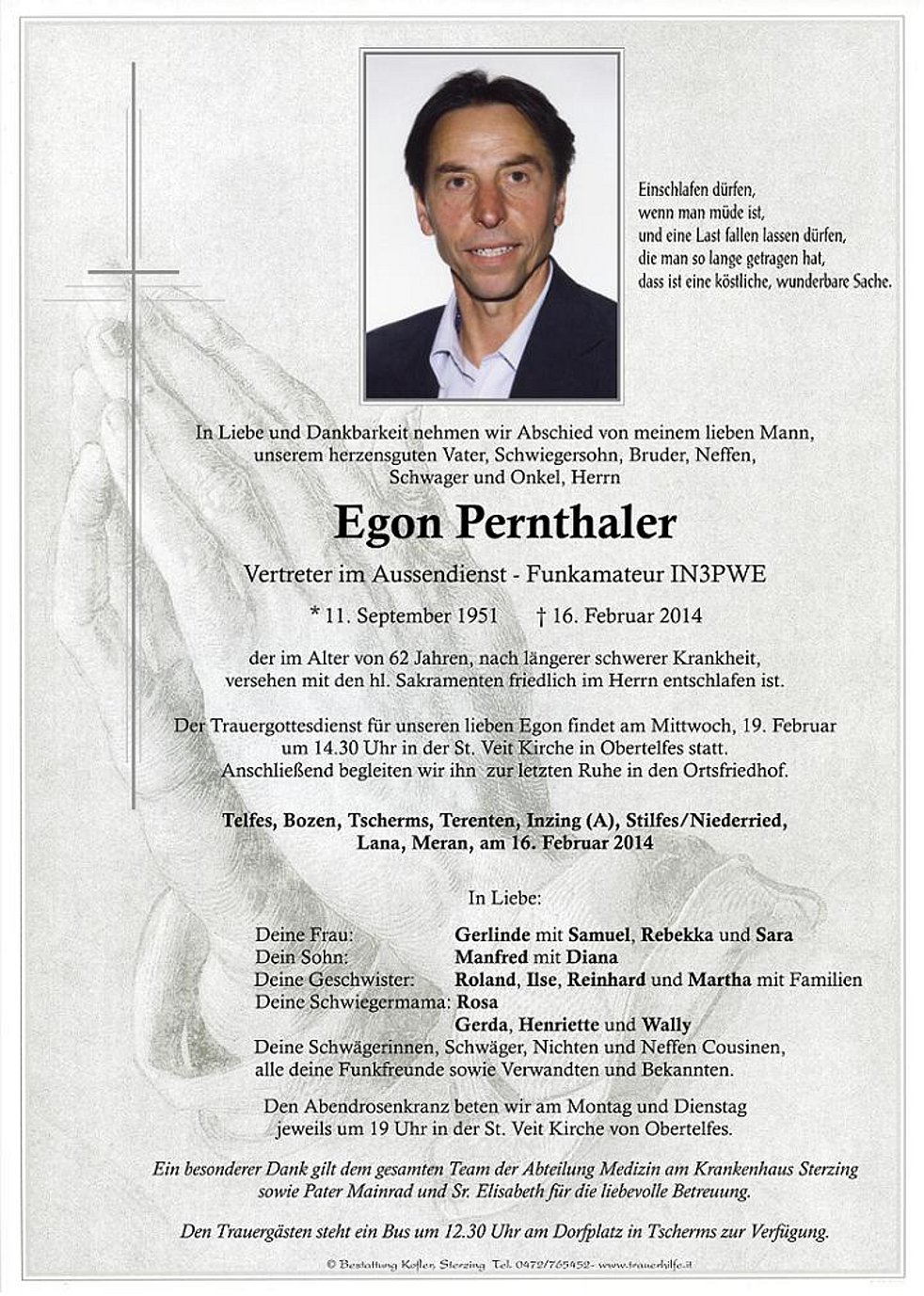 Der Trauergottesdienst für unseren lieben Egon findet am Mittwoch, 19. Februar