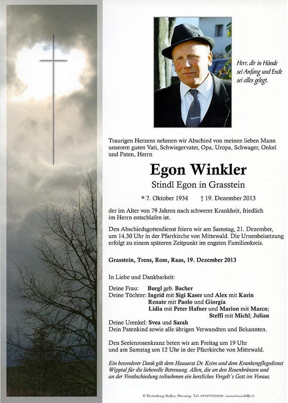 Ein besonderer Dank gilt dem Hausarzt Dr. Keim und dem Krankenpflegedienst Wipptal