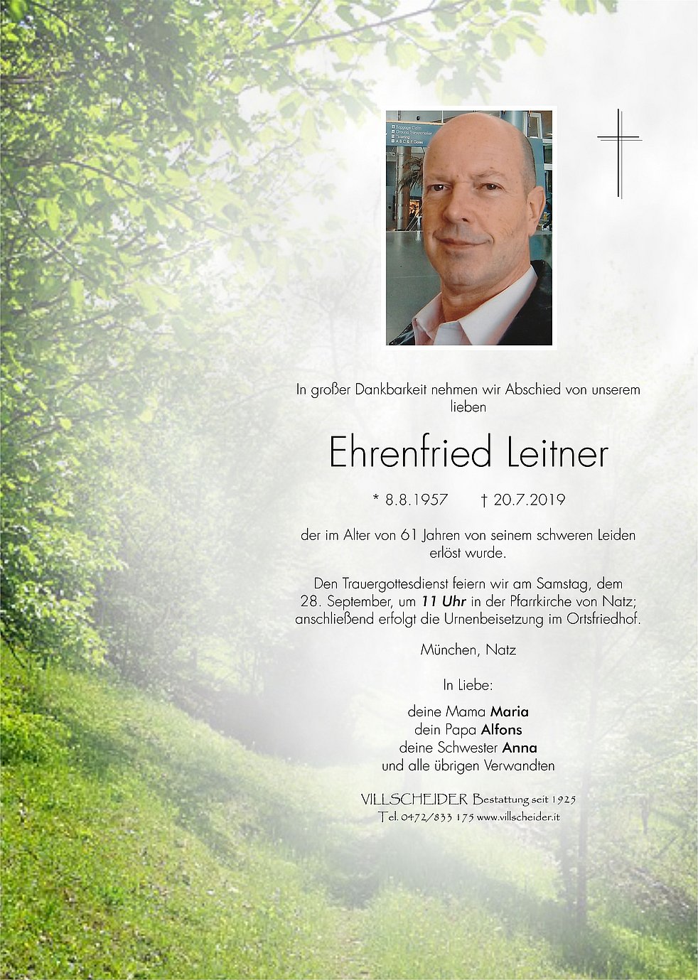 Urnenbeisetzung: 28.09. - 11:00 Uhr Natz