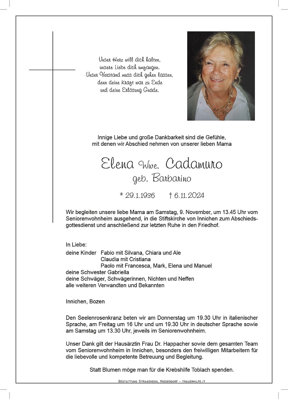 Frau Cadamuro ruhen Sie im himmlischen Frieden! Aufrichtige Anteilnahme!