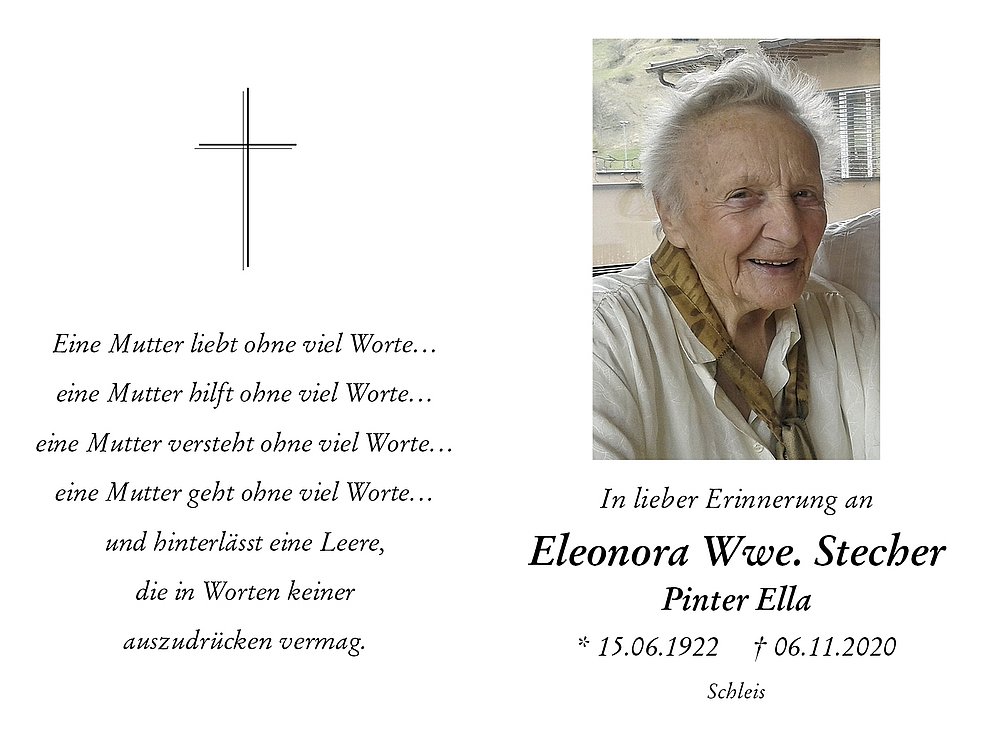 unserer guten Mama, Schwiegermama, Oma, Uroma und Tante, Frau