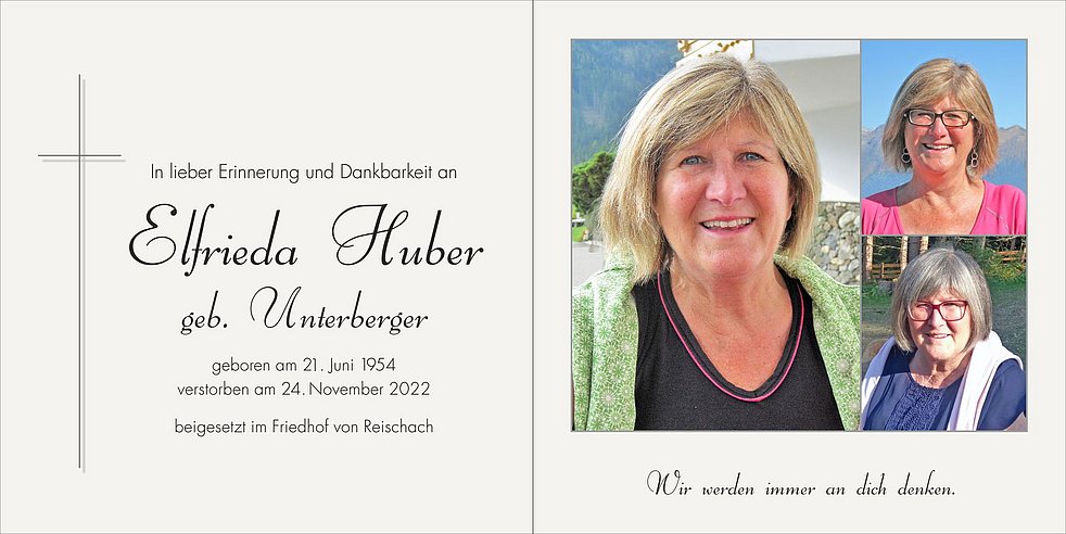 Mit dem Gefühl tiefen Dankes für all das, was sie für uns war und gab, nehmen wir traurigen Herzens Abschied von meiner lieben Frau, unserer Mama, Oma und Schwiegermutter, Frau