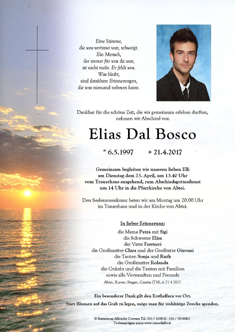 Gemeinsam begleiten wir unseren lieben Elli am Dienstag dem 25. April, um 13.40 Uhr vom Trauerhaus ausgehend, zum Abschiedsgottesdienst um 14 Uhr in die Pfarrkirche von Abtei.