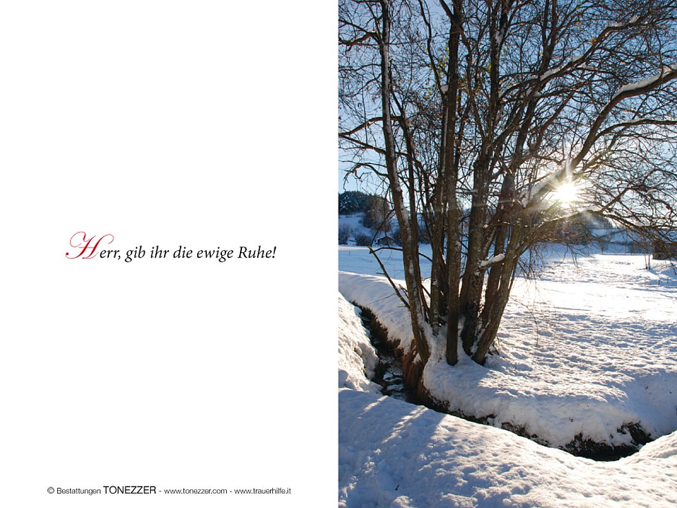 Am Montag, 8. Jänner, um 13.30 Uhr beten wir den Rosenkranz in der Pfarrkirche; um 14 Uhr feiern wir den Begräbnisgottesdienst, und anschließend begleiten wir unsere liebe Lydia zur letzten Ruhe auf den Ortsfriedhof von Prad.