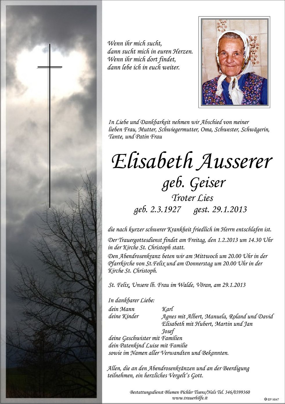 Der Trauergottesdienst findet am Freitag, den 1.2.2013 um 14.30 Uhr