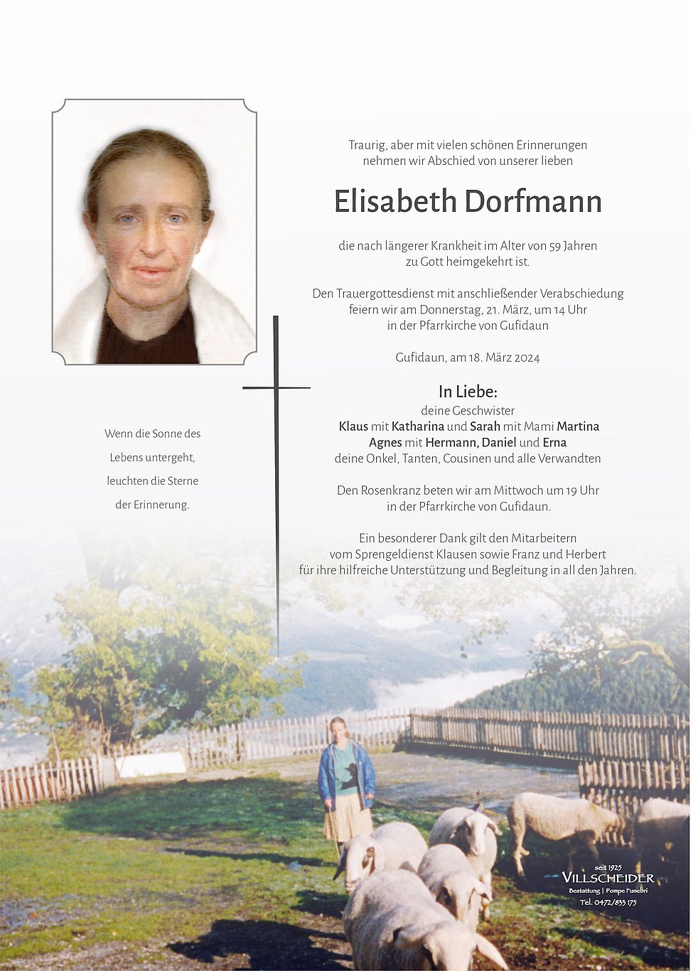 Trauerfeier: 21.03. - 14:00 Uhr Gufidaun