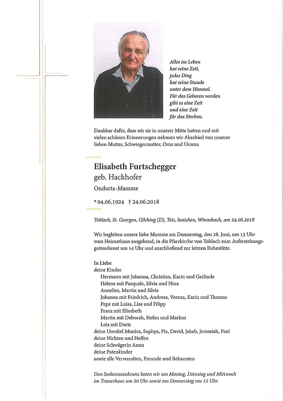 Wir begleiten unsere liebe Mamme am Donnerstag, den 28. Juni, um 13 Uhr vom Heimathaus ausgehend, in die Pfarrkirche von Toblach zum Auferstehungsgottesdienst um 14 Uhr und anschließend zur letzten Ruhestätte.