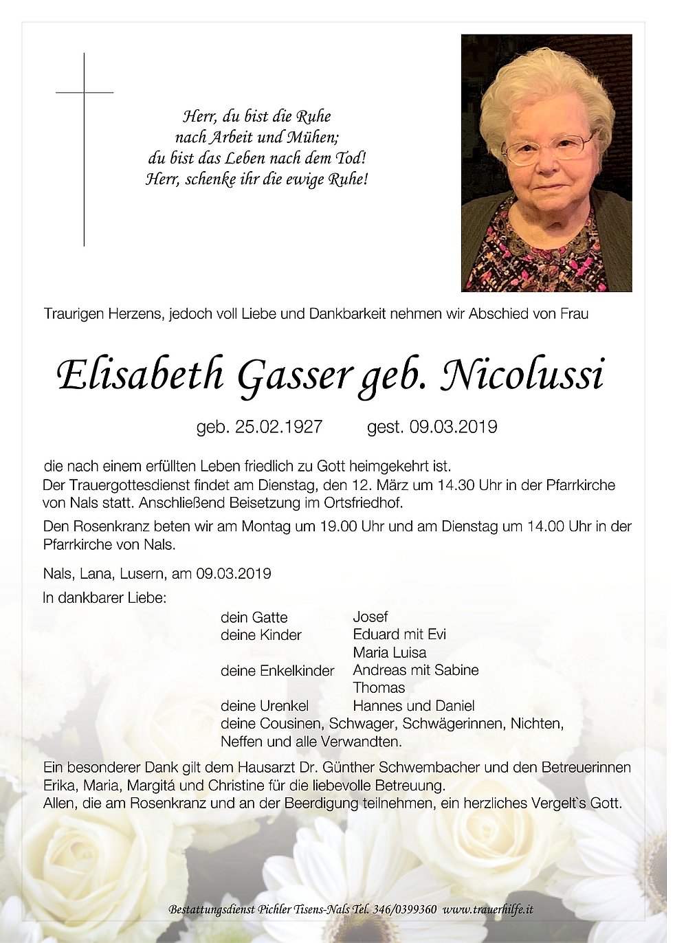 Begräbnisgottesdienst: 12.03. - 14:30 Uhr Nals