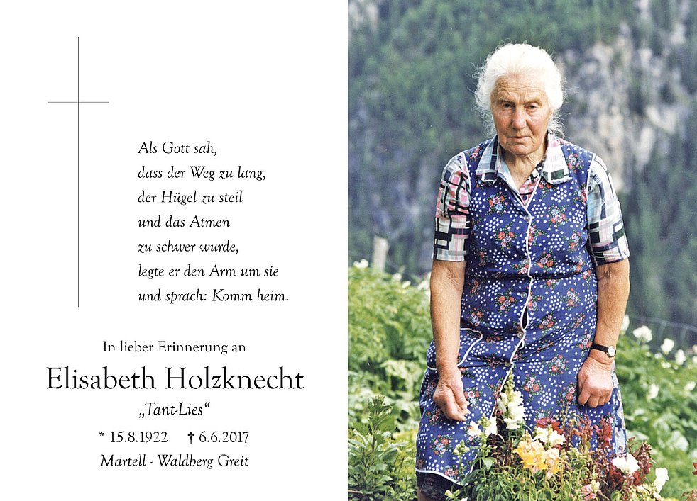 Den Begräbnisgottesdienst mit anschließender Beerdigung feiern wir am Freitag, 9. Juni, um 14 Uhr in der Pfarrkirche von Martell.