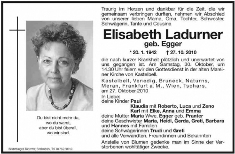 deine Mutter Maria Wwe. Egger geb. Pranter