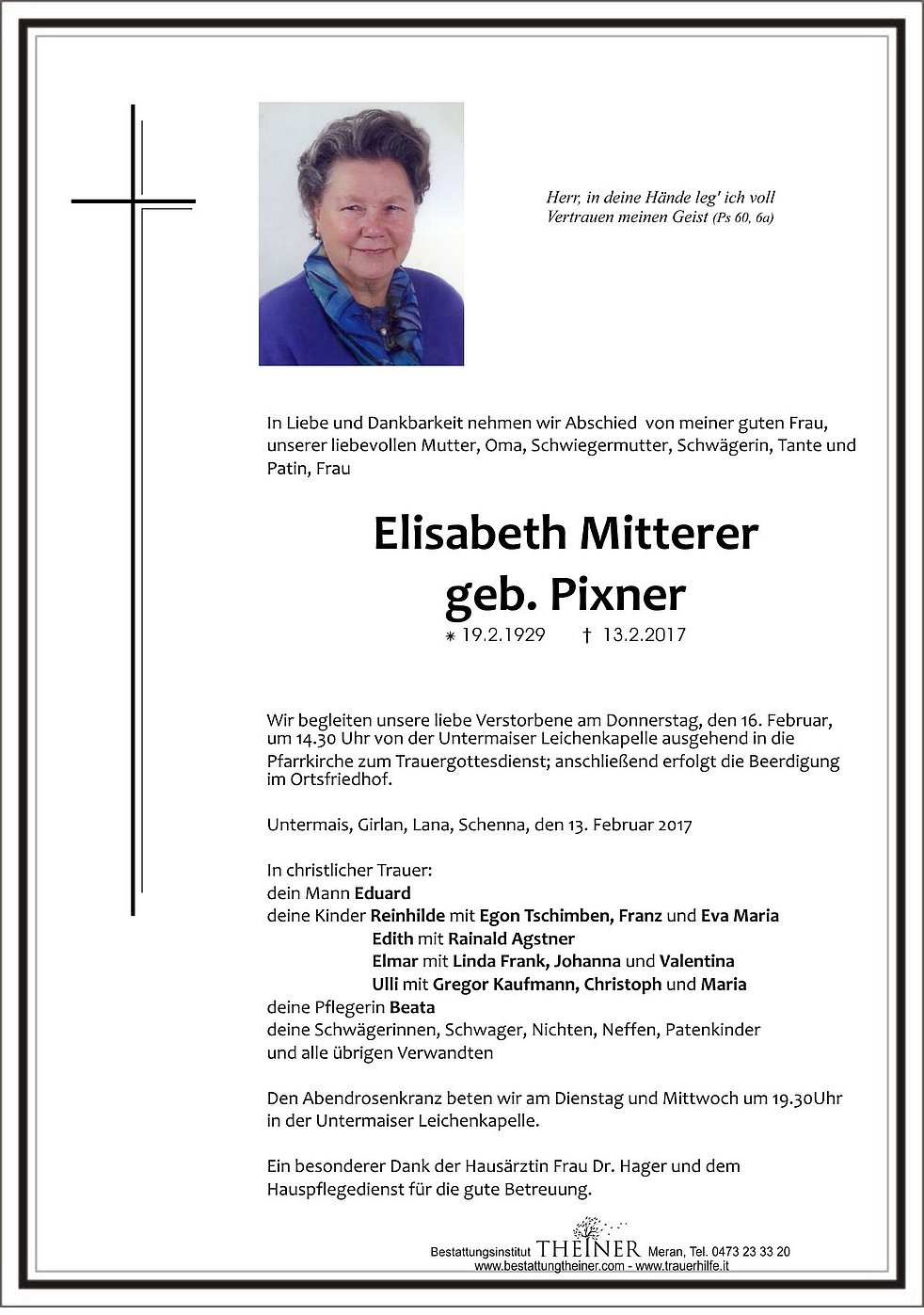 Wir begleiten unsere liebe Verstorbene am Donnerstag, den 16. Februar,