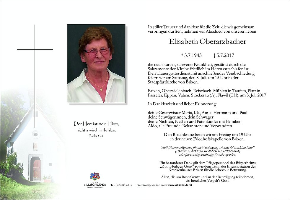 „Zum Heiligen Geist“ sowie dem Team der Intensivstation des Krankenhauses Brixen für die liebevolle Betreuung.