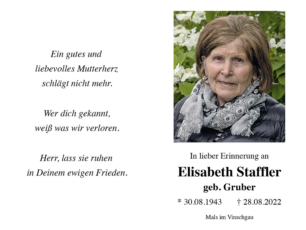 Anstelle von Blumen spende man für die Pfarrkirche von Mals.