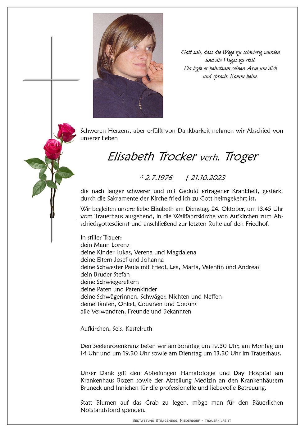 Begräbnisgottesdienst: 24.10. - 14:00 Uhr Aufkirchen