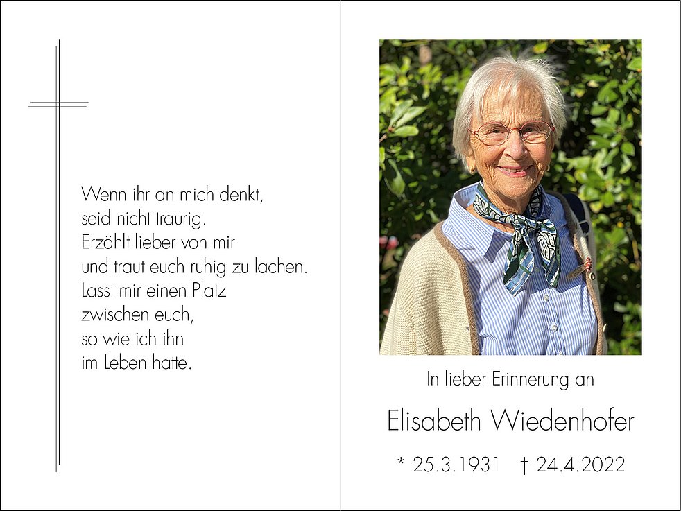 Traurig, aber dankbar für die schöne Zeit, die wir gemeinsam verbringen durften, nehmen wir Abschied von meiner lieben Mutti, unserer Schwester, Schwägerin und Tante