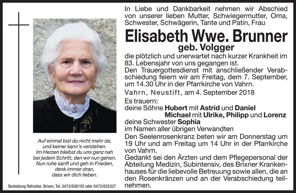 Gedankt sei den Ärzten und dem Pflegepersonal der Abteilung Medizin, Subintensiv, des Brixner Krankenhauses für die liebevolle Betreuung, sowie allen, die an den Rosenkränzen und an der Verabschiedung teilnehmen.