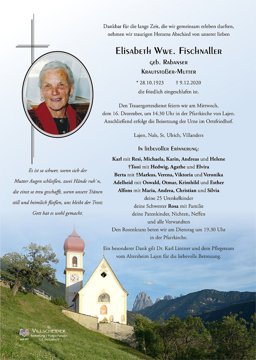 Liebe Trauerfamilie,unser aufrichtiges Beileid am Tod eurer lieben Mama.