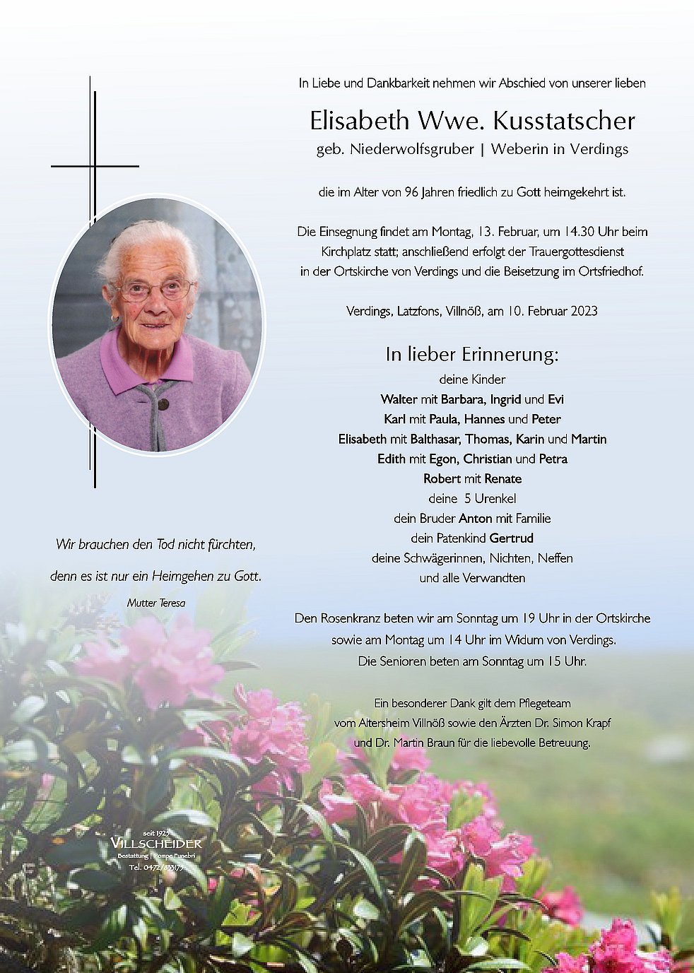 Trauerfeier: 13.02. - 14:30 Uhr Verdings