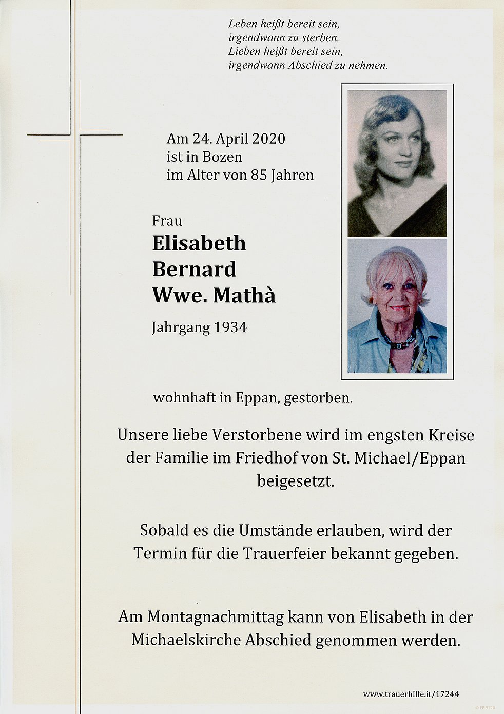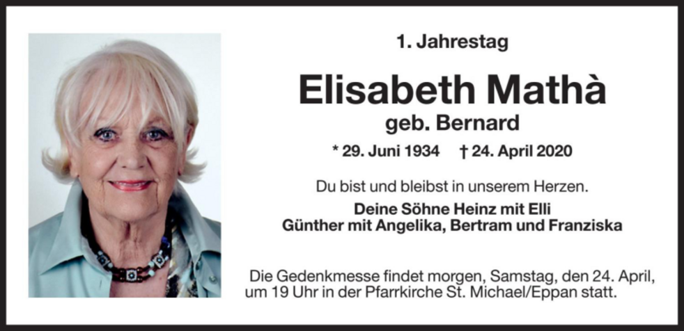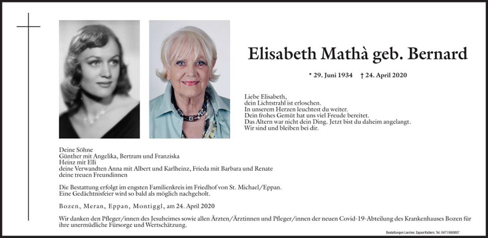 Die Bestattung erfolgt im engsten Familienkreis im Friedhof von St. Michael/Eppan.