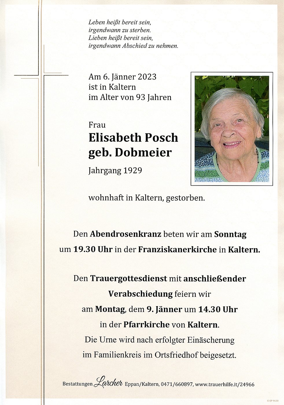 Den Trauergottesdienst mit anschließender Verabschiedung feiern wir am Montag dem 9. Jänner um 14.30 Uhr in der Pfarrkirche von Kaltern