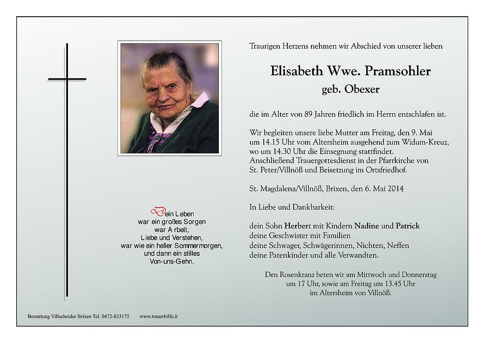 Wir begleiten unsere liebe Mutter am Freitag, den 9. Mai