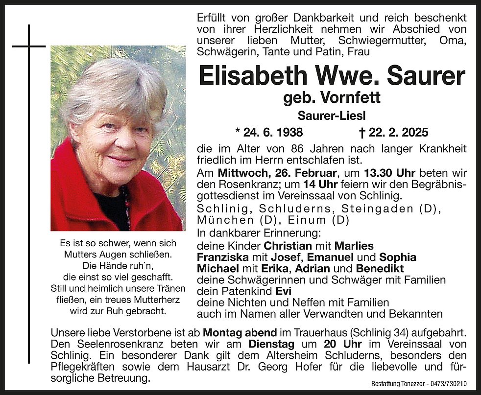 In euren Tränen spiegelt sich ihr Lachen und auch wenn unsere Liesl jetzt von uns gegangen ist, bleibt ihre Liebe und Herzlichkeit in der Erinnerung zurück.