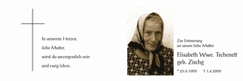 Elisabeth Wwe. Tschenett geb. Zischg