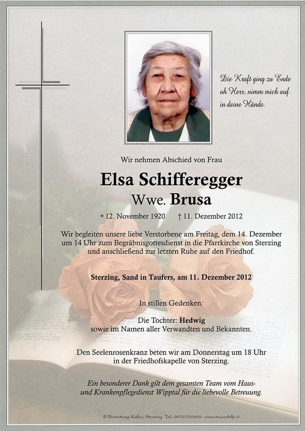 um 14 Uhr zum Begräbnisgottesdienst in die Pfarrkirche von Sterzing