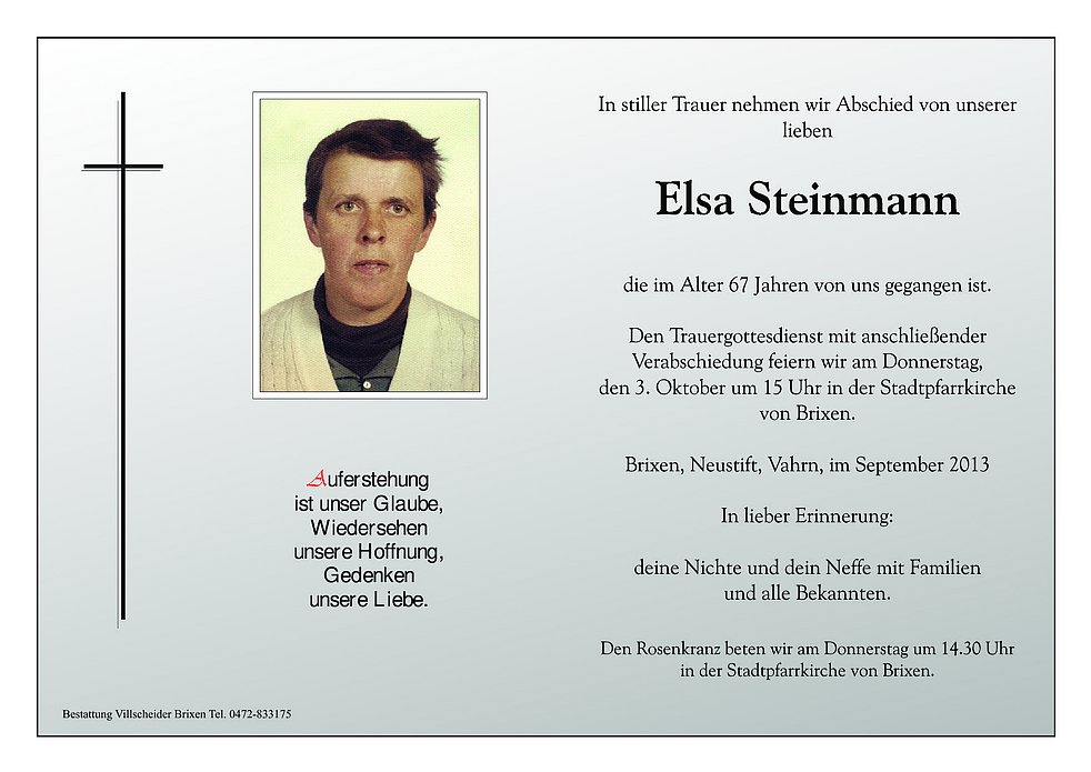 Den Trauergottesdienst mit anschließender Verabschiedung feiern wir am Donnerstag,