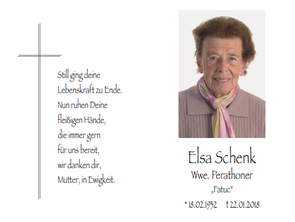 Gemeinsam begleiten wir unsere liebe Mama am 24. Januar um 14.30 Uhr von der Friedhofskapelle ausgehend zum Abschiedsgottesdienst in die Pfarrkirche von St. Christina.