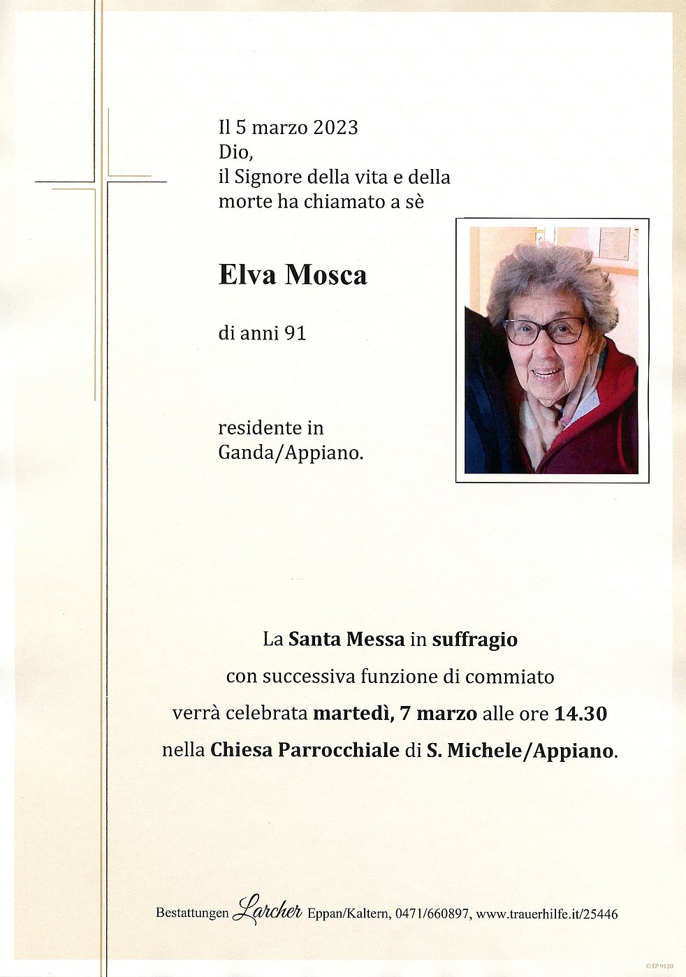 Trauerfeier: 07.03. - 14:30 Uhr Pfarrkirche St. Michael/Eppan