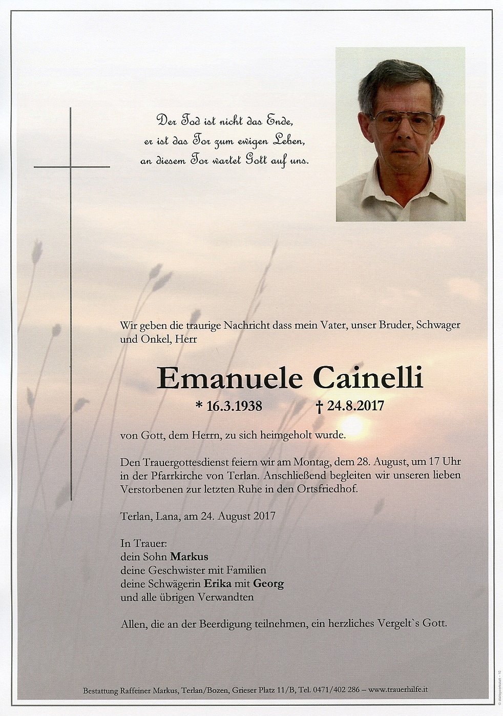 Begräbnisgottesdienst: 28.08. - 17:00 Uhr Pfarrkirche Terlan