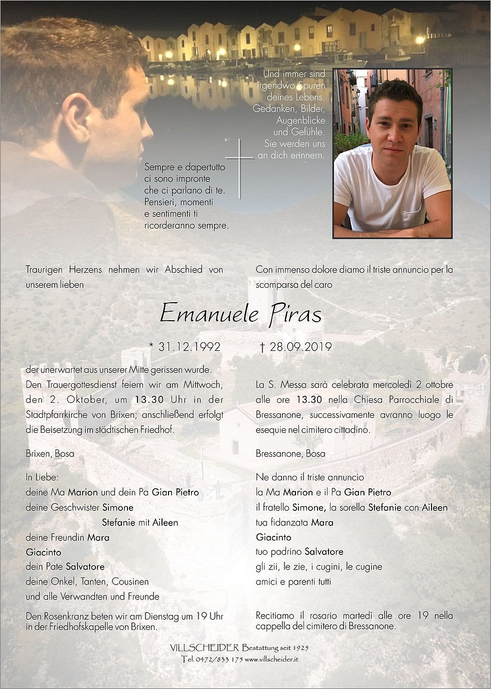schmerz zum heimgang deines sohnes emanuele