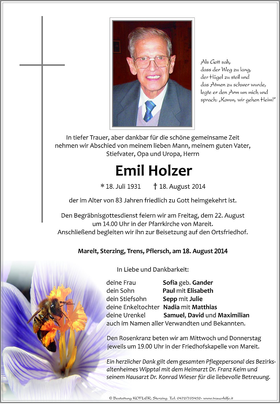 sowie dem Hausarzt Dr. Wieser für die liebevolle Betreuung.