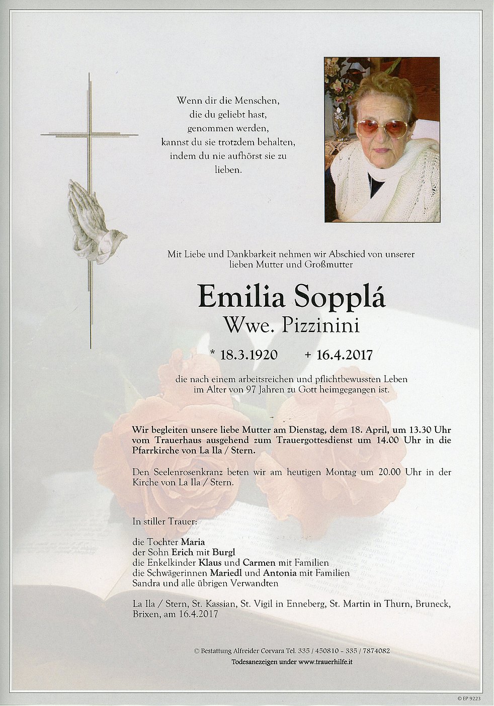 Wir begleiten unsere liebe Mutter am Dienstag, dem 18. April, um 13.30 Uhr vom Trauerhaus ausgehend zum Trauergottesdienst um 14.00 Uhr in die Pfarrkirche von La Ila / Stern.