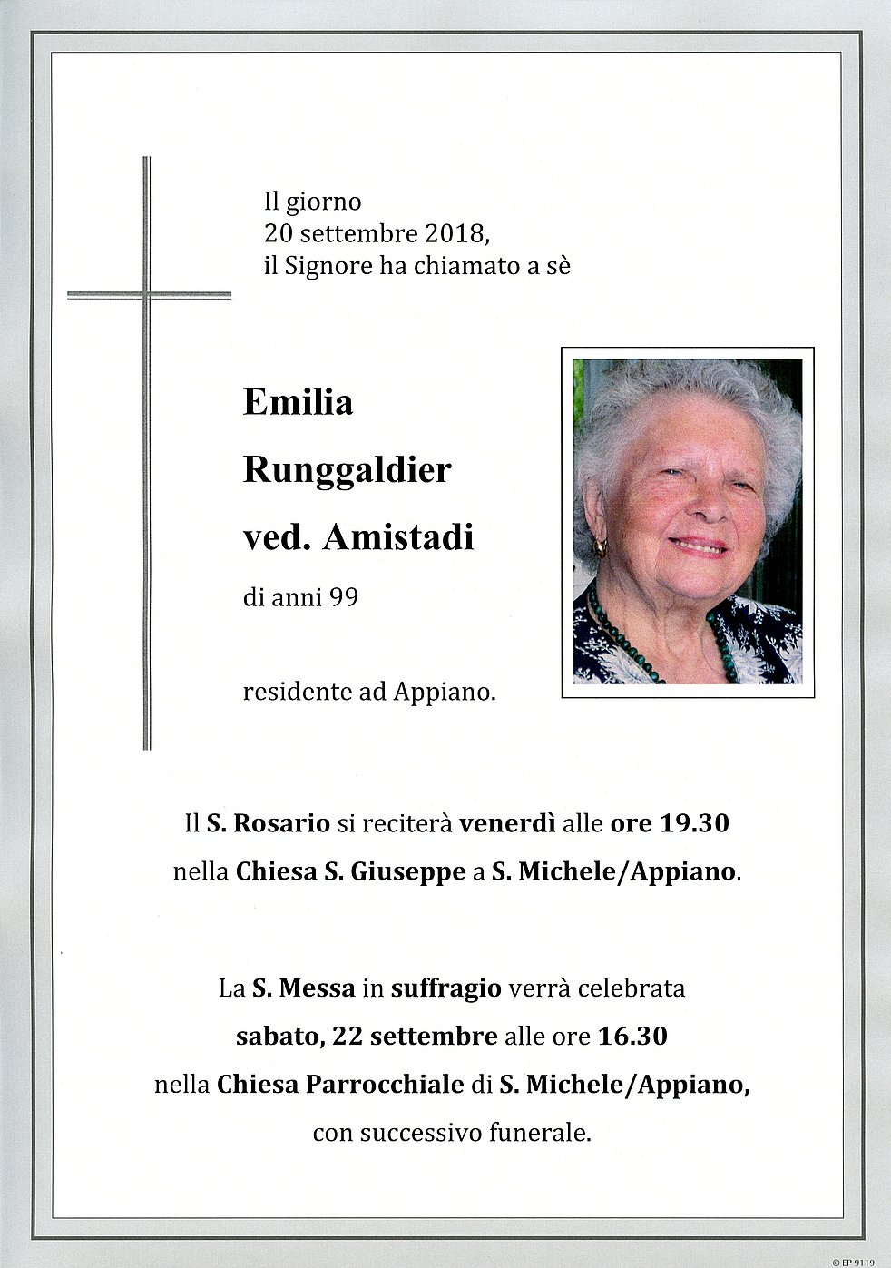Begräbnisgottesdienst: 22.09. - 16:30 Uhr Pfarrkirche St. Michael/Eppan