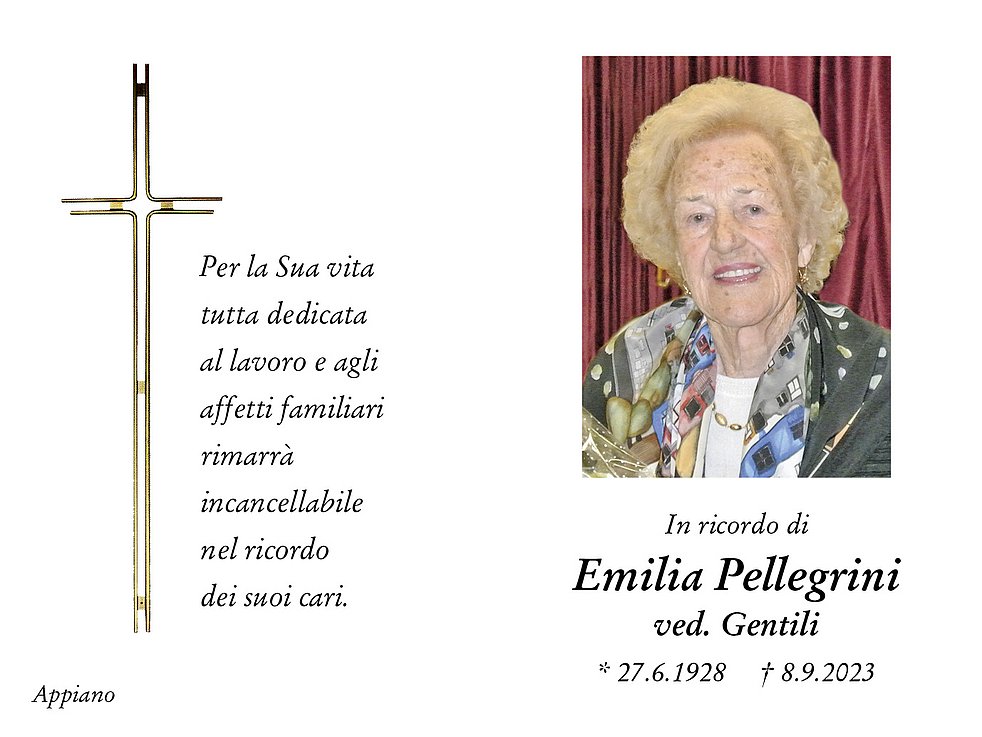 Den Trauergottesdienst feiern wir am Dienstag, dem 12. September, um 17 Uhr in der Pfarrkirche von St. Pauls/Eppan. Anschließend begleiten wir unsere liebe Verstorbene auf den Ortsfriedhof.