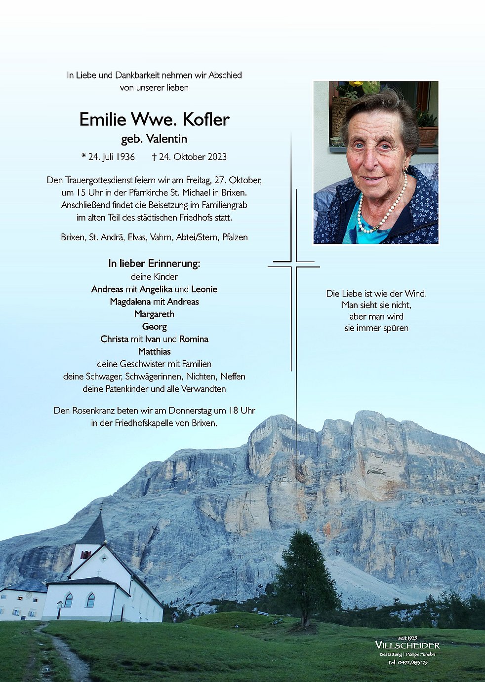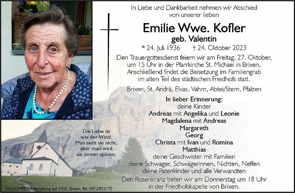 Begräbnisgottesdienst: 27.10. - 15:00 Uhr Brixen