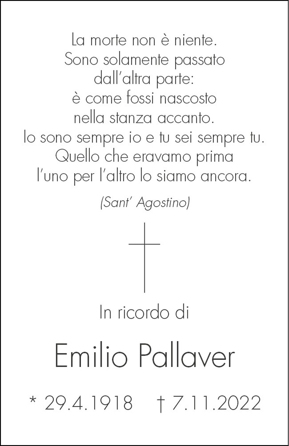 La S. Messa in suffragio verrá celebrata lunedì, 14 novembre alle ore 14.00 nella chiesa parrocchiale di Gries, indi il nostro caro verrà cremato.